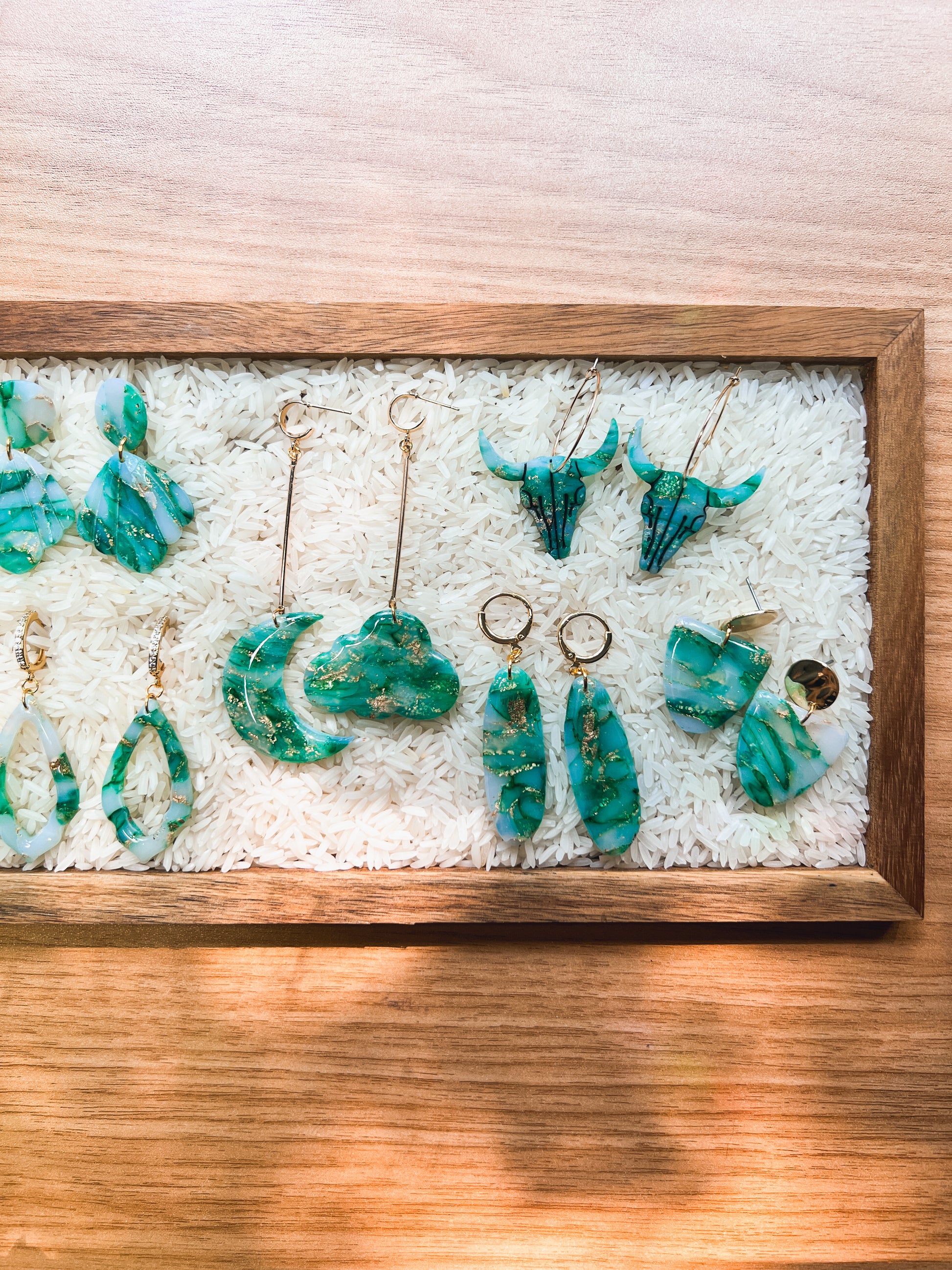 • Polymer clay is non-toxic, durable, and extremely light-weight (for reference, most pairs weight less than a quarter!)